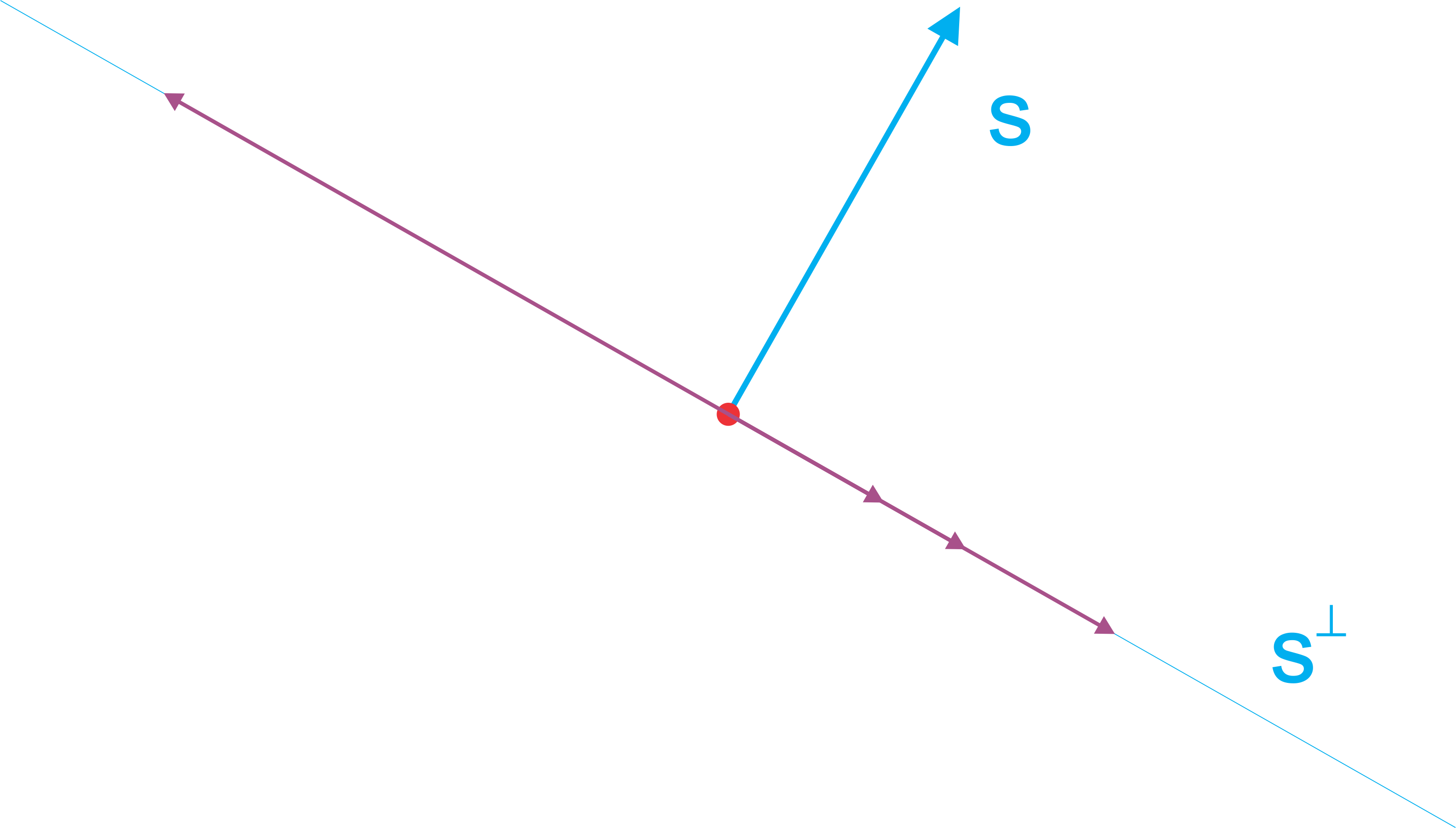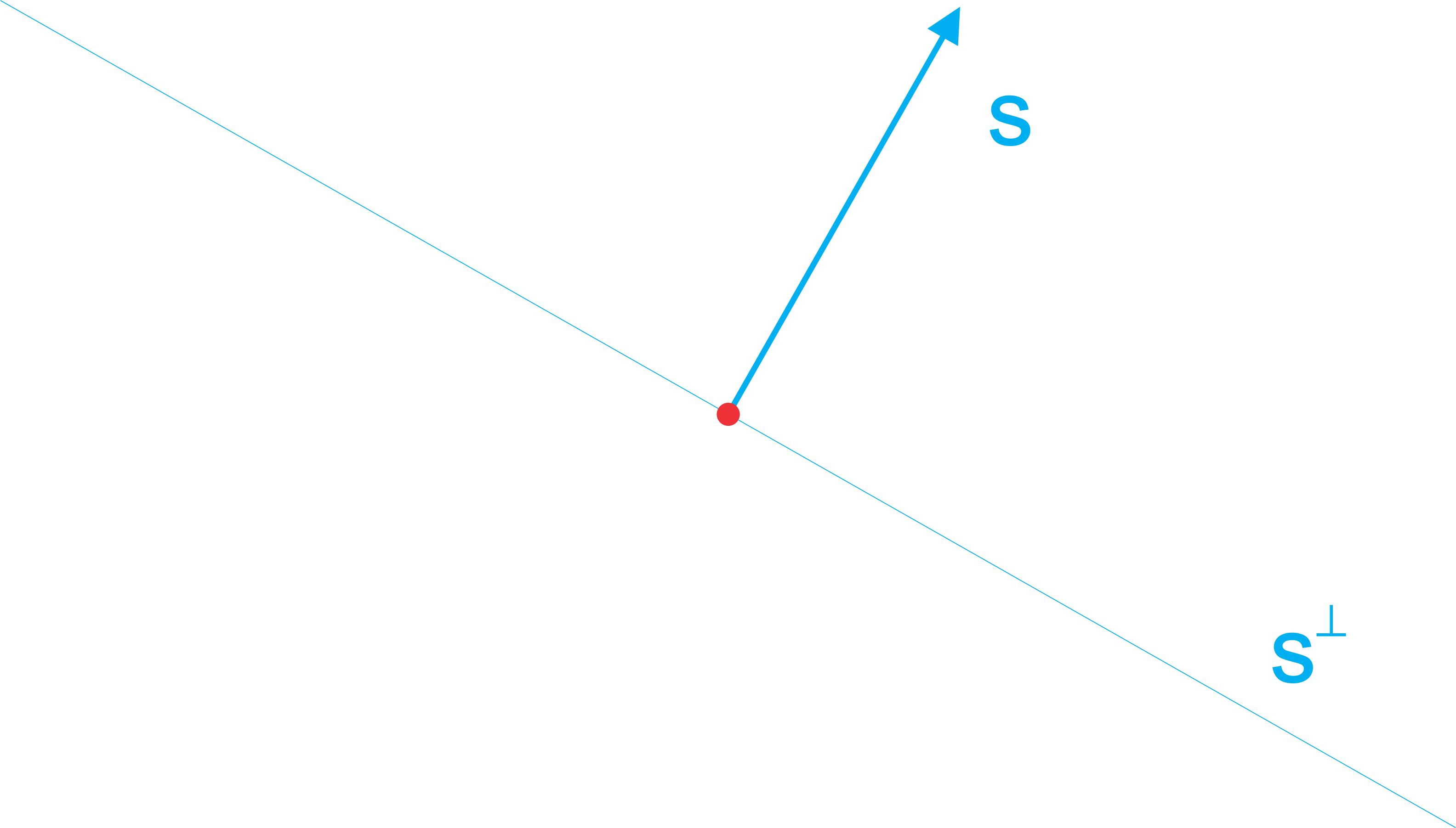 The picture below shows a vector \(\Vect{s}\) in \(\RNrSpc{2}\), together with its orthogonal complement \(\Vect{s}^{\bot}\), the line perpendicular to \(\Vect{s}\). (The red dot represents the origin.)
