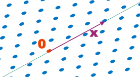 The blue dots below form a set \(S\) which is closed under vector addition but not under scalar multiplication. To see that it is not closed under scalar multiplication, consider any vector in \(S\): there are points on the line through \(\Vect{x}\) which do not belong to \(S\).