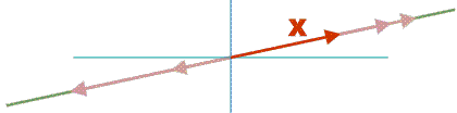 The two lines below form a set \(S\) which is closed under scalar multiplication: For any vector \(\Vect{x}\) in \(S\), the entire line through the origin in the direction of \(\Vect{x}\) also belongs to \(V\).